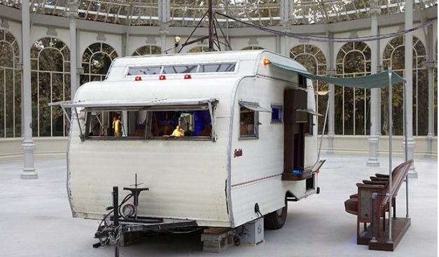 A number of small scenes framing each of the caravan’s windows gain meaning in the temporary soundtrack that conceals this installation and are mixed with small doses of simulated reality that also forms part of it, in sound terms.