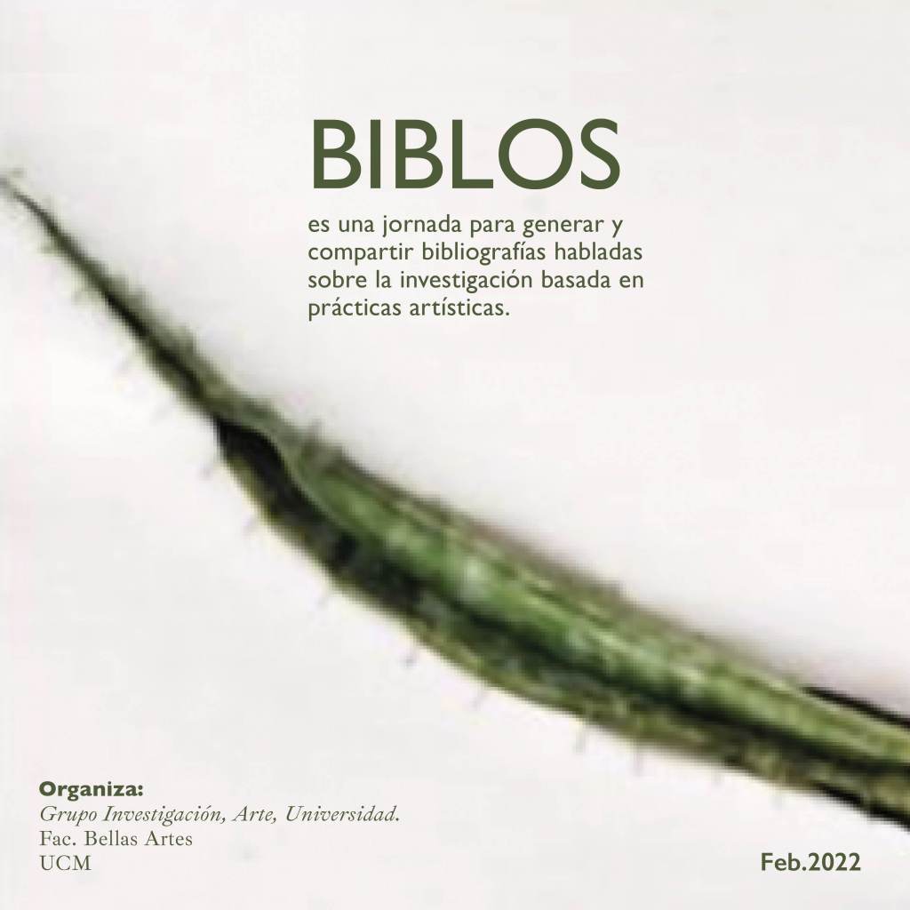 BIBLOS es un encuentro para poner en común bibliografías, organizado por el grupo de investigación de la Universidad Complutense de Madrid Investigación, Arte, Universidad, del que formo parte, junto con la Biblioteca de la Facultad de Bellas Artes. Con motivo de las terceras jornadas de BIBLOS presenté el texto que Anja Kanngieser y Zoe Todd escribieron en el año 2020 bajo el título From environmental case study to environmental kin study. Es un texto en el que ambas investigadoras se plantean una alternativa para acercarse al estudio de la problemática medioambiental y en particular a las metodologías de estudio de casos. Desde el pensamiento indígena contemplan una noción de la tierra -del territorio (Land)- que integra lo humano y lo no humano de forma conjunta y a la que proponen aproximarse a través de la escucha como una forma de sentir y sintonizar, estando atentas (noticing) no solo a todo lo que acontece en el entorno sino también a la posición que ocupamos en ese acercarnos o estar en los lugares y las formas en que intervenimos en ellos.
