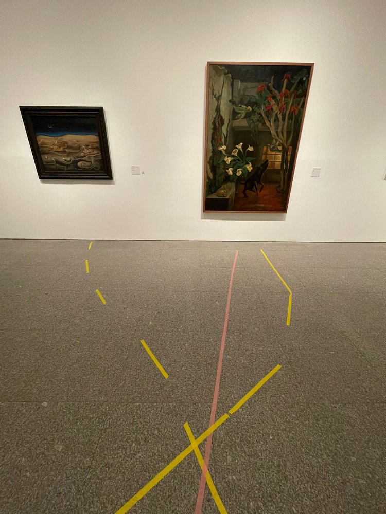 Esas estrofas nos sirvieron para especular e imaginar conceptos a partir de los que reordenar la colección, haciéndola así propia, visualizando los devenires y recorridos múltiples que permite una colección con cintas adhesivas de colores que unieron obras de forma eventual.