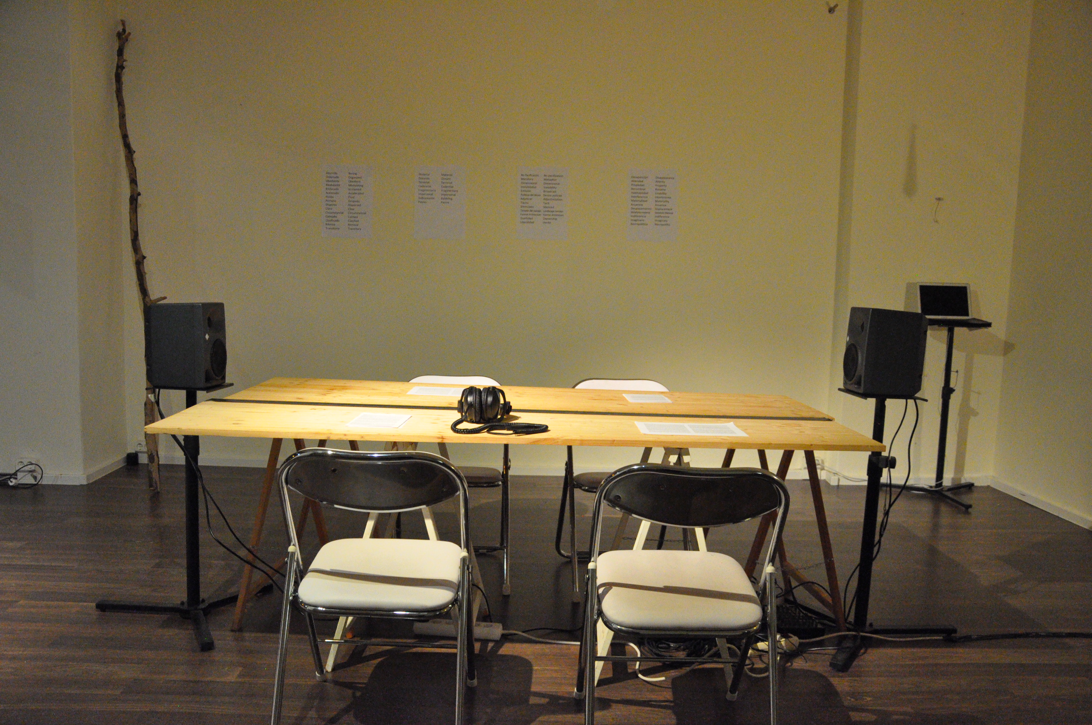 La intervención I just want to occupy your listening comprende una serie de elementos (piezas de audio, vídeos y la instalación de diferentes elementos como cajas, impresiones y textos escritos) que exploran en el espacio de la galería la posibilidad e imposibilidad de leer. La intervención partió de la acción de leer como acto de resistencia a los ritmos de producción y ocupación laboral contemporáneos. I just want to occupy your listening dialoga de este modo con el concepto de ocupación espacial y temporal y lo vincula con la precariedad sistémica tan extendida a todos los niveles en la sociedad contemporánea. En la búsqueda de otros modos de ocupación en la intervención se trabajó con textos de Saskia Sassen (Public Interventions. The Shifting Meaning of the Urban Condition), Hito Steyerl (Art as Occupation: Claims for an Autonomy of Life), Suzanne Lacy (ed.) (Mapping the terrain. The New Genre Public Art) y Frédéric Pajak (La inmensa soledad).