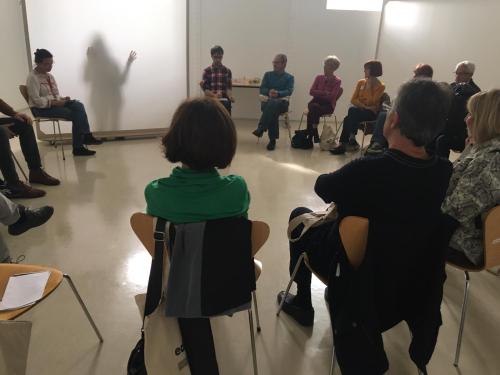 Sesión 6 (29 enero, 2020): Activada por Christian Fernández Mirón propició un encuentro donde las distintas voces del equipo de mayores se escucharon para relatarse a sí mismas. En un clima desenfadado de juego y placer abordaron reflexiones, dudas o aprendizajes con relación a lo artístico. Intercambiaron pensamiento y voces y reconstruyeron conjuntamente con todo ello nuevas y evocadoras frases.