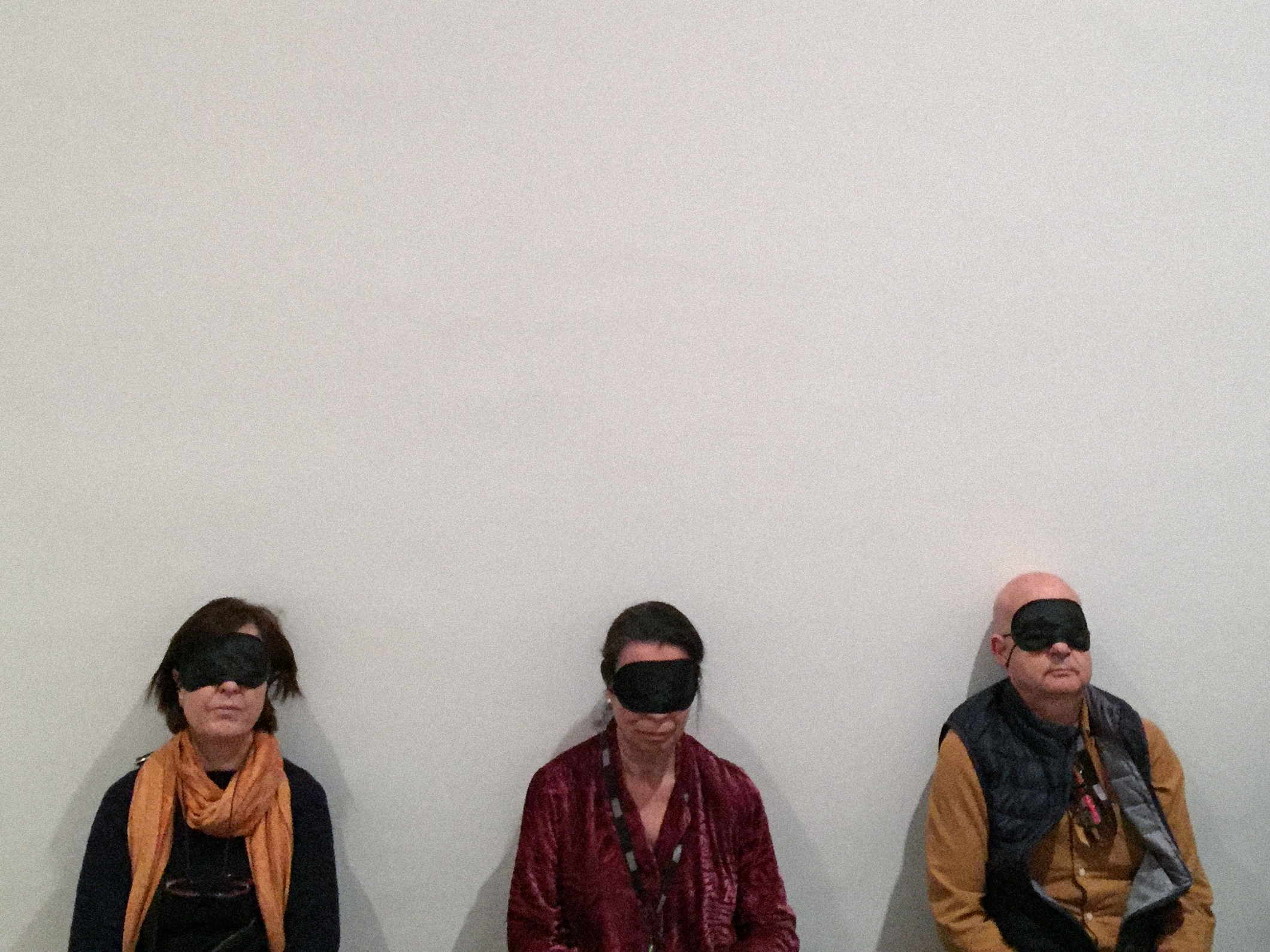 Sesión 1 (30-oct-2019): Activada por Augmented Spatiality. Esta sesión de primer encuentro entre las diferentes partes que activan el proyecto se estructuró en torno a los tres ejes que articulan el proyecto: la escucha, la creación sonora y la sensibilización al entorno. Presentaciones semiacusmáticas que disolvieron los cuerpos en sombras haciendo aparecer las voces y otras dimensiones del cuerpo. Paseos ralentizados por el museo para amplificar la escucha y la percepción atenta del espacio.