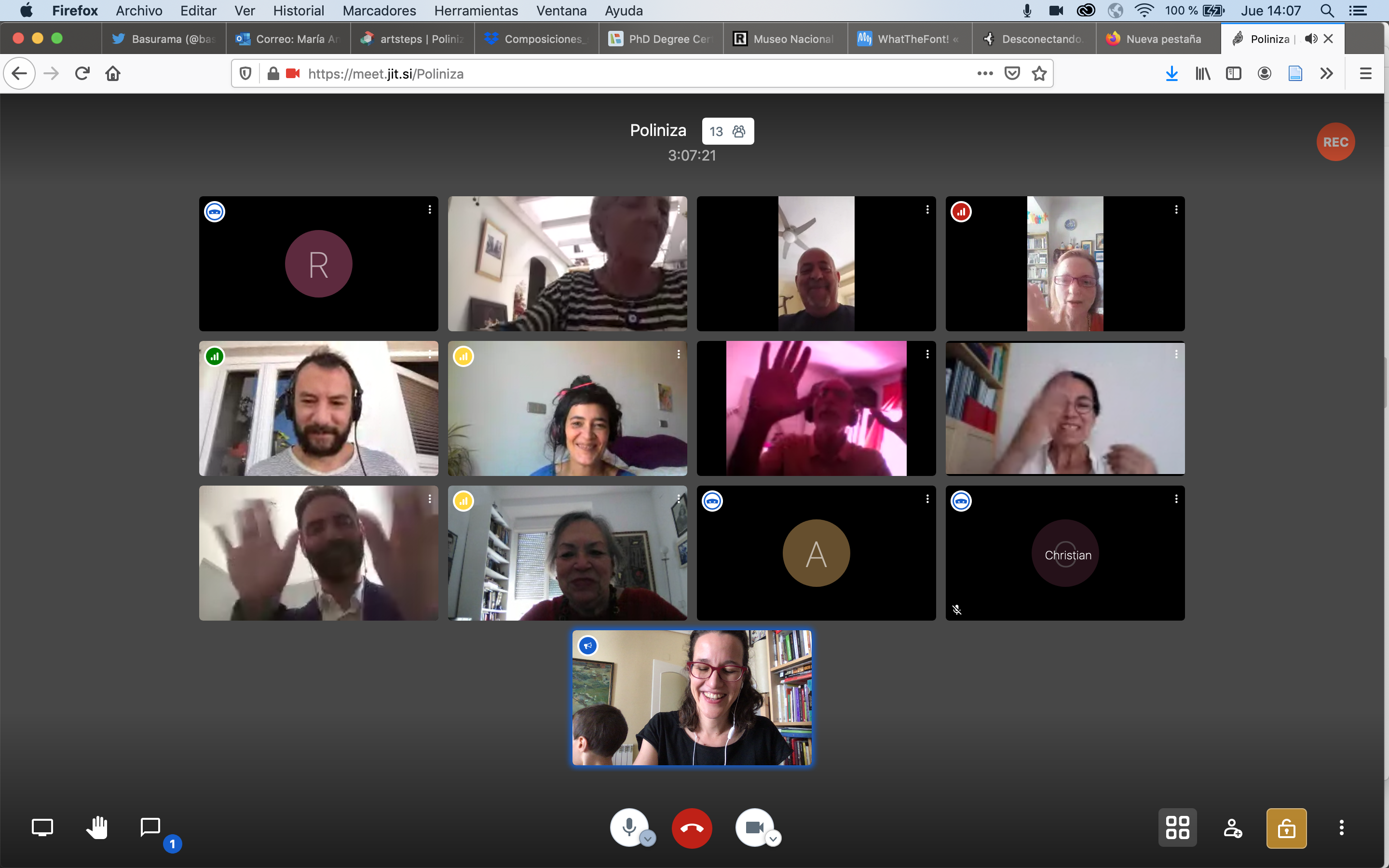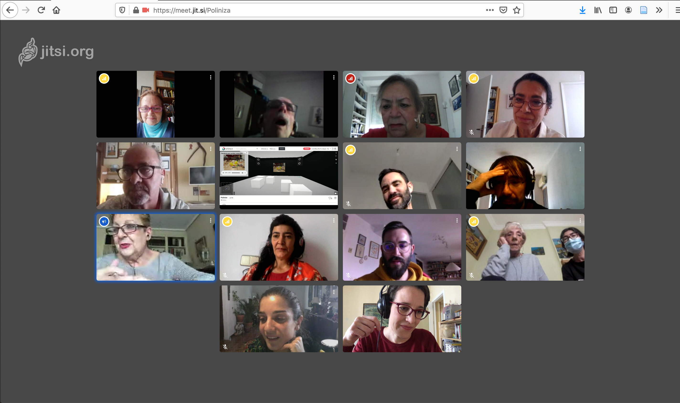 Con motivo de la crisis sanitaria provocada por la pandemia de la Covid-19, Poliniza tuvo que interrumpir su actividad durante dos meses. Pasado este tiempo y tras conocer las diferentes realiadades que atravesaban el grupo retomamos la actividad de Poliniza el 14 de mayo en formato virtual con sesiones de 2h a través de videoconferencia.